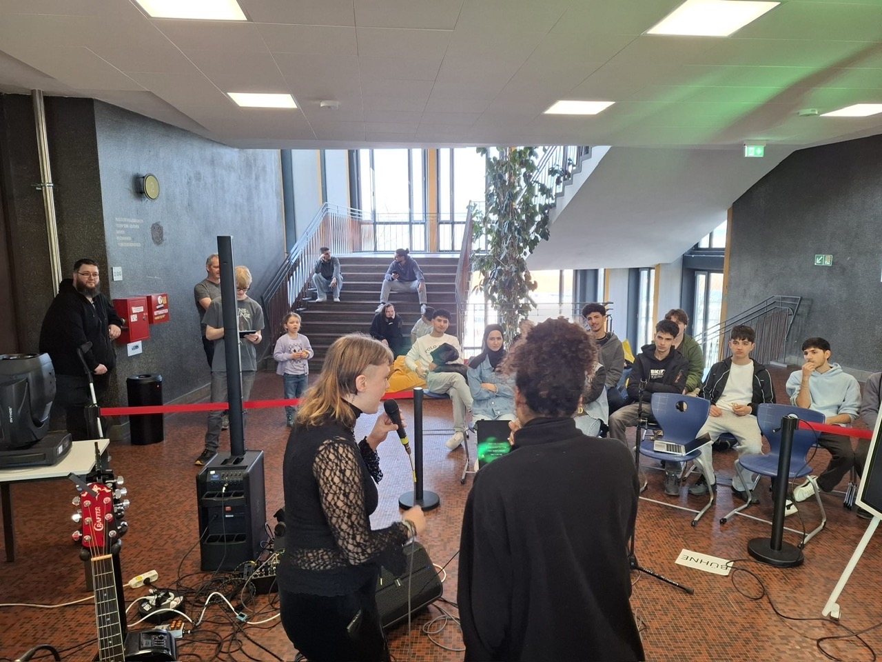 Neben Vorgestellten Projekten der AV und dem "Tag der Möglichkeiten" von AV und BFS, war ein Highlight die Offene Bühne der Veranstaltungstechnik. Dort wurde eine Lichtshow als eine komplette Backline (drums, Piano, Gitarren etc.) mit Karaoke aufgebaut. Es wurde musiziert und gesungen, was der Stimmung das i-Tüpfelchen verliehen hat.