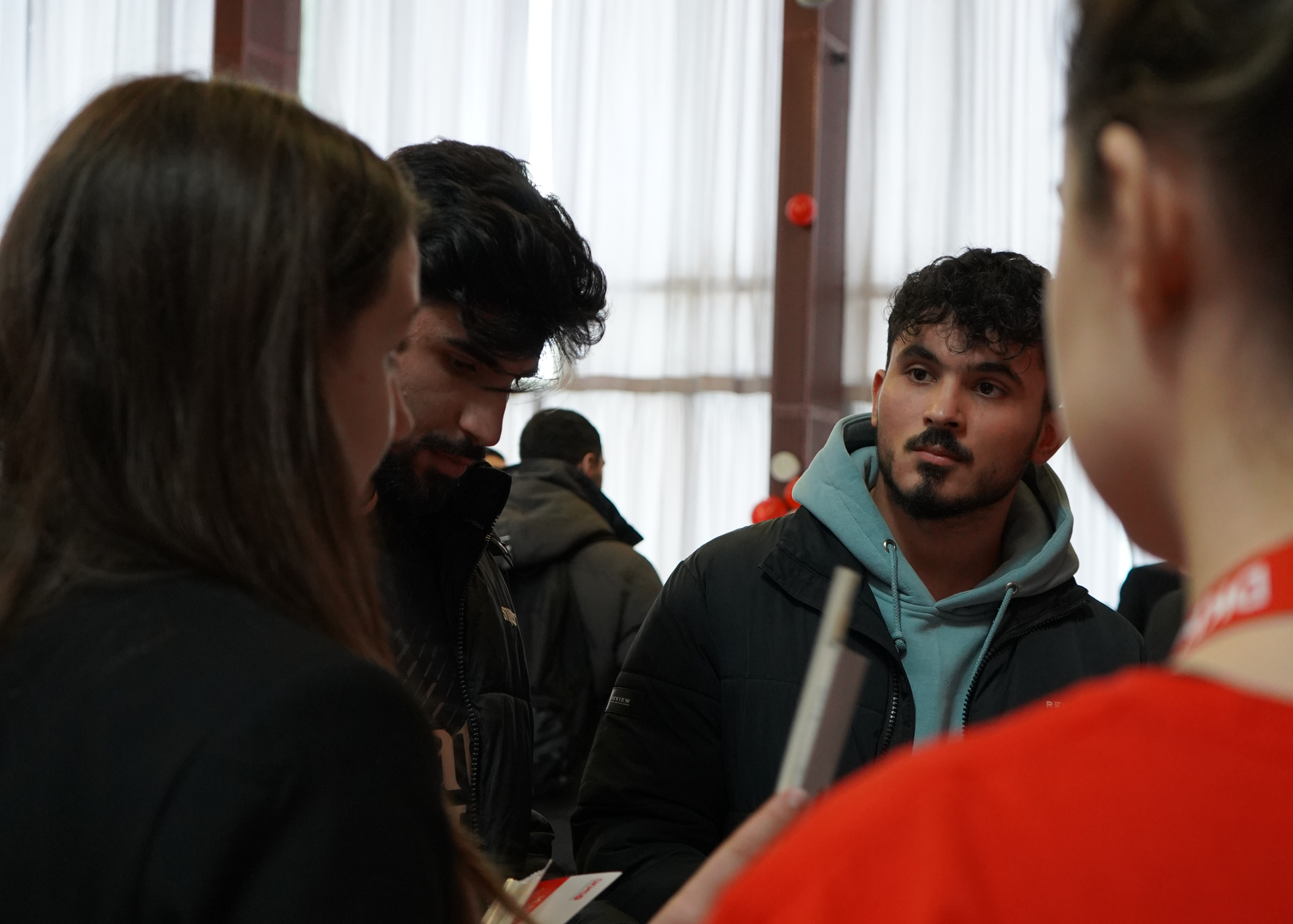 Alexander Türk ist hier Lehrer – Elektrotechnik und Physik. An diesem Tag gab es aber weder Lehrbuch noch Klausur, denn er hatte er eine ganz persönliche Geschichte zu teilen. Anlass war der Besuch der Kanadierin Mackenzie Curran.